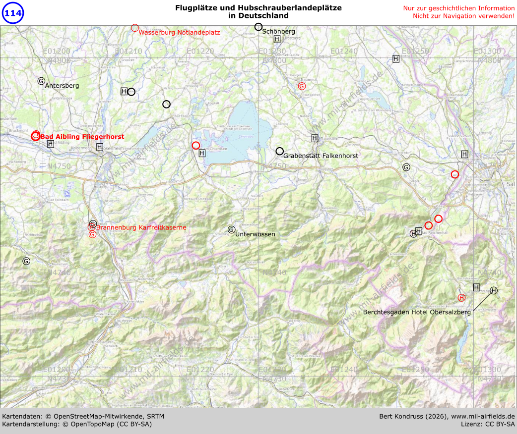 3700+ Flugplätze und Hubschrauberlandeplätze, aktuell & historisch