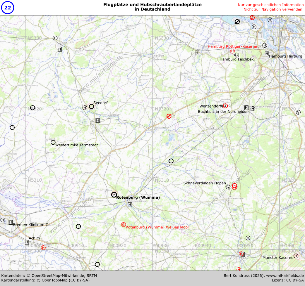 Flugplätze in Deutschland: Karte N5300 E00900